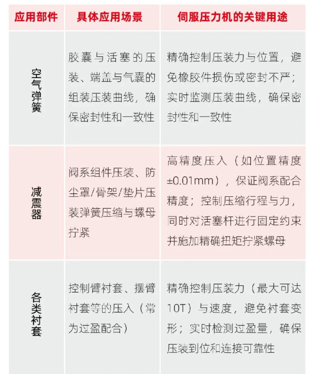 在關乎車輛安全、舒適與操控的底盤系統(tǒng)制造中,每一個壓裝點的質量都至關重要。易久伺服壓力機通過高精度的力與位移控制,為底盤關鍵部件的壓裝提供了可靠保障。